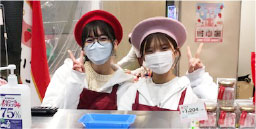 私たちは、学生です!一緒に応募しました。仕事は楽しく元気いっぱい働いています!毎回違った催事のイベント等もあり覚える事もありますが、接客業は勉強にもなりますし、何よりお客様の笑顔が見れるのが最高です!自分の時間で希望したシフトで働けますので学校とバイトの両立もできます。働いたバイト代で好きなライブにも行ってまーす!